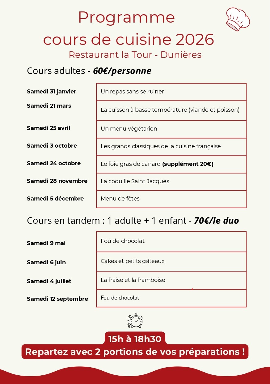 Découvrez les Cours de Cuisine du Restaurant La Tour